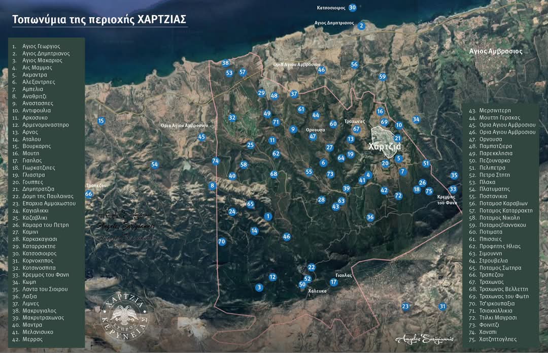 Το χωριό έχει δικό του δημοτικό σχολείο που μεγάλωνε συνεχώς και έδωσε τα πρώτα εφόδια σε πολλούς σημερινούς καταξιωμένους Χαρτζιώτες. Η εκκλησία του χωριού είναι αφιερωμένη στον Αρχάγγελο Μιχαήλ. Είναι μονόκλιτη, καμαροσκέπαστη. Το δάπεδό της είναι φτιαγμένο με βότσαλα. Το υπερώο ήταν ξύλινο και στην αψίδα που στηρίζει την καμάρα είχε εντοιχισμένα πιάτα. Ξεχωρίζουν οι εικόνες του Χριστού, που είναι δωρεά ζεύγους του 1521(βρίσκεται στο μουσείο της Αρχιεπισκοπής) και της Παναγίας με το βρέφος, που χρονολογείται στον 16ο αιώνα.