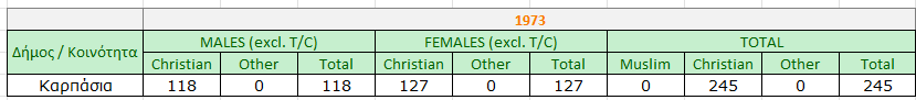 Η Καρπάσια το 1973 αριθμούσε 245 κατοίκους.