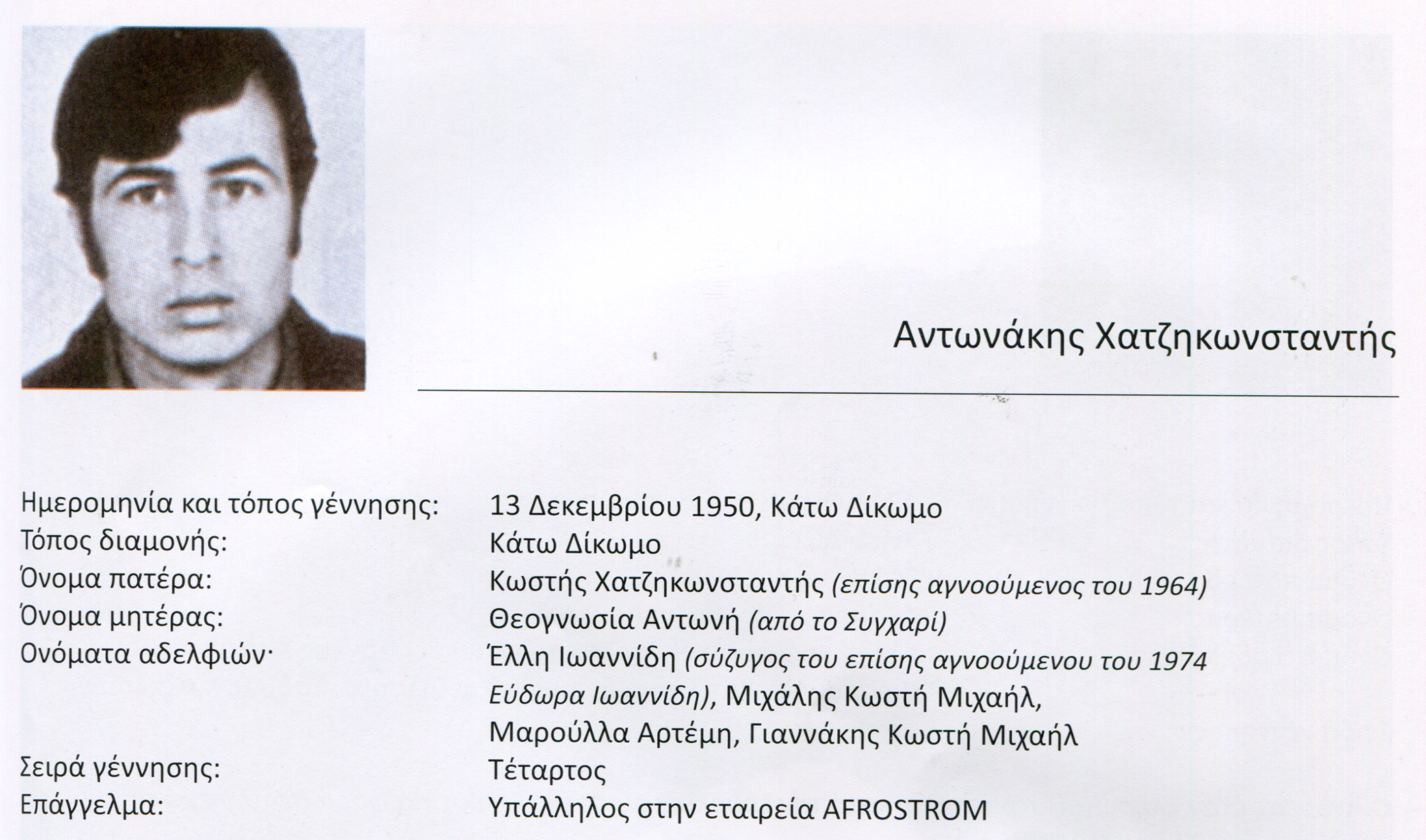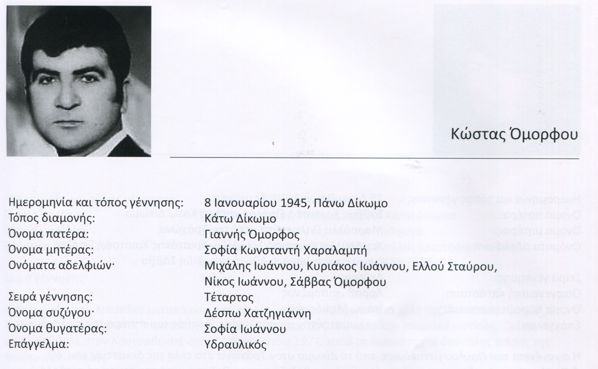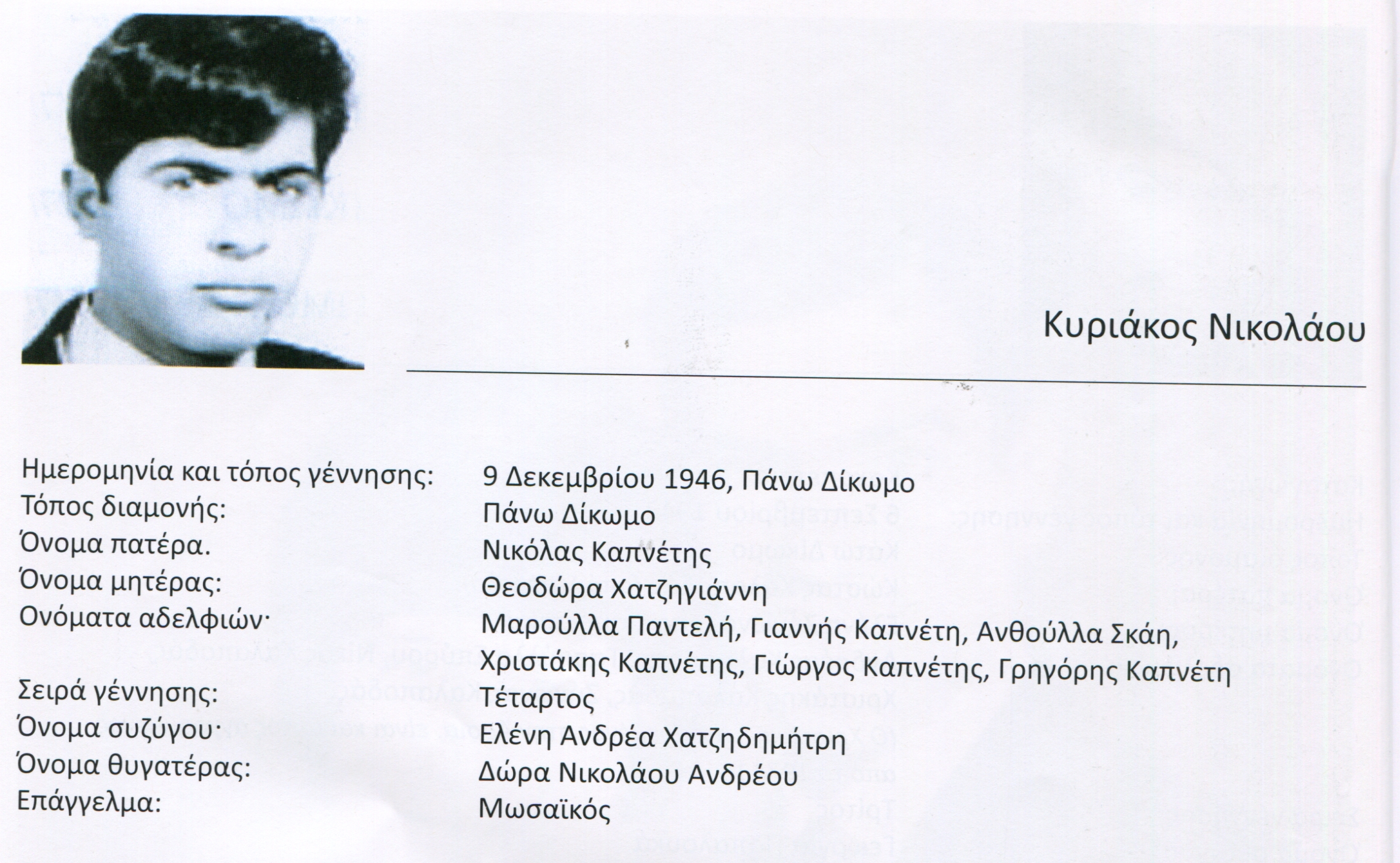 Το Δίκωμο μέχρι το 1974 ήταν ένα ζωντανό κύτταρο της Κυπριακής κοινωνίας, συνεχώς αναπτυσσόμενο. Δε γνώριζε αστυφιλία. Οι πέντε χιλιάδες κάτοικοι του ήταν ανοιχτόμυαλοι, προοδευτικοί και δουλευταράδες. Καθημερινά με λεωφορεία και ιδιωτικά αυτοκίνητα μετέβαιναν κυρίως στη Λευκωσία για να εργαστούν σε εργοστάσια, βιοτεχνίες καταστήματα, υπηρεσίες. Οι υπόλοιποι έμεναν στο χωριό και ασχολούνταν με τη γεωργία, την κτηνοτροφία, με την παρασκευή τζιονιού ή με άλλες εργασίες.