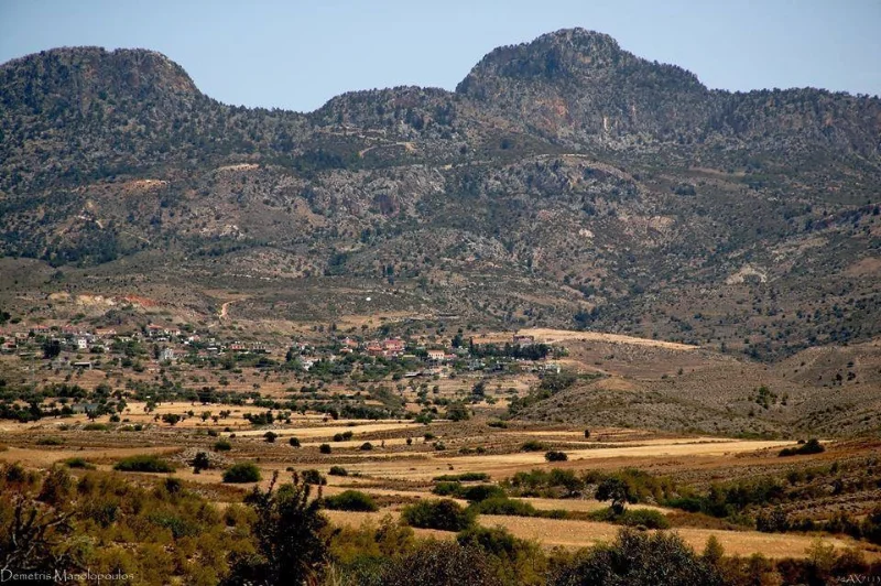 Βλέποντας τα άσπρα σπιτάκια του χωριού, θα νόμιζε κανείς ότι προσπαθούν να σκαρφαλώσουν στην πλαγιά του βουνού. Λίγο πιο πάνω διακρίνεται το μοναστήρι της Παναγίας της Αψιθκιώτισσας, κάτω από την επιβλητική κορυφή της Αφεντρούσας. Ανατολικότερα βρίσκεται το κάστρο του Βουφαβέντο και πιο κάτω λάμπει κατάλευκο το μοναστήρι του Αγίου Χρυσοστόμου.